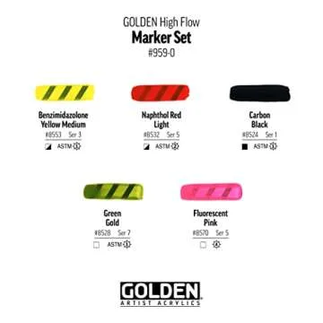 Show moreUnlock your artistic potential with the Golden High Flow Acrylic Ink and Marker Set. This ultimate companion for artists includes a set of three various-nibbed empty markers crafted to meet all your artistic needs and five 1oz bottles of vibrant acrylic inks that promise to inspire creativity. Each marker allows for the precise application of ink, enabling seamless blending and layering. The high flow formula of the ink ensures that it works beautifully on a wide range of surfaces, making it an essential addition to any artist's toolkit. With the lightfastness rating provided on each bottle, you can trust that your creations will remain vibrant and true over time, making your artworks more sustainable and appealing.
