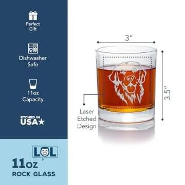 Show morePresenting the exquisite Golden Retriever Dog Face Round Rocks Glass, a delightful tribute to one of the most cherished dog breeds. Crafted from premium glass, this rocks glass showcases an intricately detailed golden retriever face, bringing a heartwarming touch to any drinkware collection. Whether it's for enjoying a fine whiskey or serving a refreshing beverage on a warm day, this glass is not only functional but also a true conversation starter. Its unique circular design and handcrafted details make this glass a perfect gift for anyone who loves dogs, particularly golden retrievers!