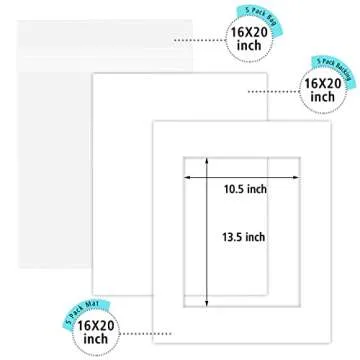 Golden State Art, 16x20 Picture Mats Mattes with White Core Bevel Cut for 11x14 Photo + Backing + Bags (White, 5 Pack)