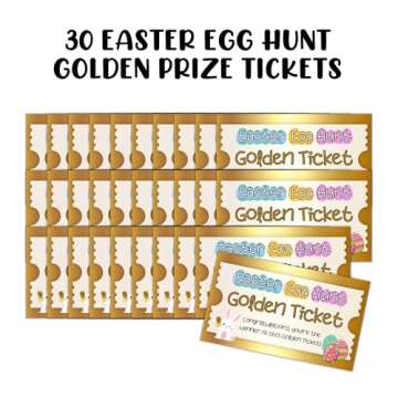 Golden Ticket Easter Egg Hunt Cards | 30 Pk 2x3.5” to put inside Neighborhood Prize Egg Game Labels Tags Bulk Gold Tickets