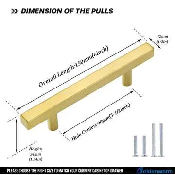 goldenwarm 5 Pack 3-1/2in Drawer Pulls Gold Cabinet Pulls Kitchen Cabinet Handles - LS1212GD90 Modern Dresser Drawer Handles Gold Cabinet Hardware Square Pulls