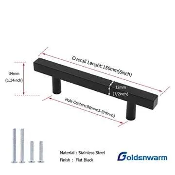 goldenwarm 8Pack Black Cabinet Pulls 3-3/4 inch Black Drawer Pulls Modern Kitchen Hardware Stainless Steel Cabinet Hardware for Dresser Cupboard