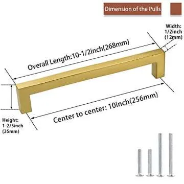goldenwarm Antique Brushed Brass Modern Cabinet Hardware 10in Drawer Handles - LSJ12GD256 Pack of 5 Top Drawer Pulls for Kitchen Bedroom Bathroom Closet