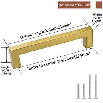 goldenwarm Cabinet Pulls Brushed Brass Bathroom Cabinet Handles Kitchen Cabinet Door Handle-LSJ12GD224 Cabinet Hardware 8-4/5" Hole Center 20 Pack