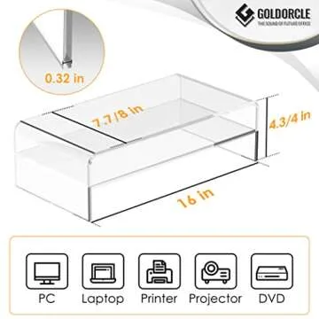 GoldOrcle Acrylic Monitor Stand Riser - Clear Desk Organizer for Comfort and Style