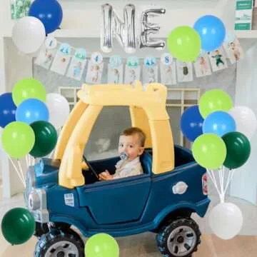 Show more Celebrate the milestone of your little one’s first birthday with the stunning Golf 1st Birthday Party Decorations Set. This eye-catching package features a delightful assortment of decorations tailored for golf enthusiasts and spirited celebrations. Packed with an impressive 15 latex balloons in vibrant shades of lime green, light green, dark blue, light blue, and classic white, this decoration set is designed to add a touch of fun and whimsy to any first birthday bash.