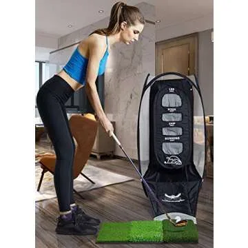 Show moreImprove your short game prowess with our **Golf Net Backyard Home Indoor Practice Hitting Chipping** system, crafted for both serious players and recreational golfers alike. This versatile practice net is perfect for mastering your chipping and pitching techniques at home, ensuring that you can hone your skills whenever you have a moment to spare. The unique design offers two interchangeable target sets that cater to various techniques, from lobs to chips, allowing you to practice at different distances and scenario setups. Never has it been easier to work on your golf game right in your backyard or living room.