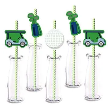 Golf Party Straw Decor, 24-Pack Birthday Or Retirement Party Supply Decorations, Paper Decorative Straws