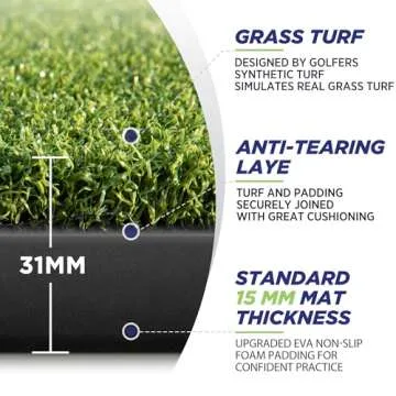 Meticulously crafted with commercial-grade materials, this mat mimics the experience of hitting on fairways. Its exceptional durability and resistance to wear are perfect for anyone looking to practice confidently, without worry. The mat is designed to stand the test of time, featuring an anti-tearing layer that enhances stability and longevity.