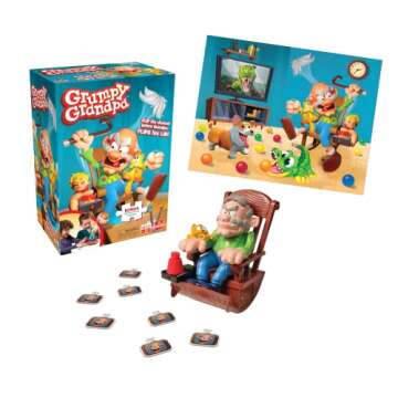 Show more Introducing a delightful and engaging game that combines the nostalgia of family fun with imaginative play! This enchanting game allows players to take turns drawing TV Channel Tokens and changing Grandpa's channel without waking him up from his nap. It is a delightful experience perfect for family gatherings, especially during holidays or weekends. The game features a realistic rocking motion and a self-contained unit that ensures none of the pieces will get lost, keeping endless laughter flowing throughout the game.