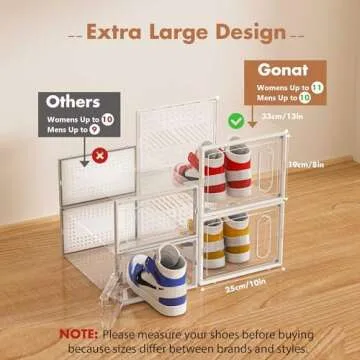 GONAT X-Large Shoe Storage Boxes, 12 Pack Shoe Organizers with Magnetic Door, Four Way Connection Shoe Containers, Clear Plastic Stackable Sneaker Bin for Closet, White,Christmas Gift
