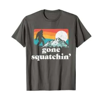 Gone Squatchin'! Funny Bigfoot Mountains Retro Graphic T-Shirt