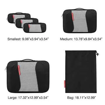 Experience seamless travel organization with the Gonex Packing Cubes, a versatile and essential addition to any traveler's gear! This set includes a variety of sizes—1 large, 1 medium, 3 small, and a handy laundry bag—crafted from durable honeycomb RipStop nylon fabric that is both super lightweight and tough. With dimensions tailored for optimal packing, these cubes not only help keep your clothing wrinkle-free but also maximize space in your suitcase....