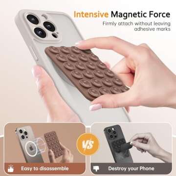 GONEZ Magnetic Suction Cup Phone Mount, Hands-Free Silicone Grip Holder Compatible with iPhone MagSafe Case, Mirror Shower Stand for Selfies and Videos, Brown