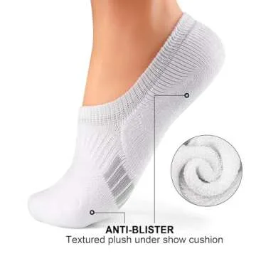 The Gonii Women's No Show Socks boast a breathable mesh design that wicks moisture away from your feet, allowing for a cool and dry experience whether you're running errands, headed to the gym, or simply lounging around. With an upgraded cushion sole covering the entire bottom, these socks provide superior cushioning and arch support, relieving friction during any activity. Say goodbye to uncomfortable running or long walks!