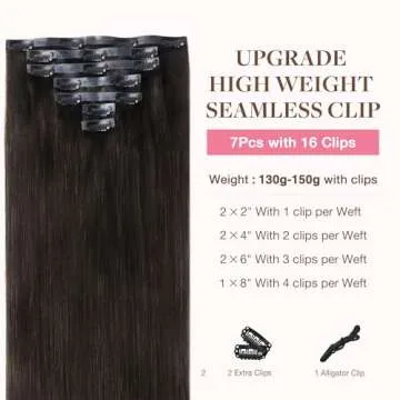 GOO GOO Clip in Hair Extensions Real Human Hair, Remy Human Hair Extensions Clip ins for Women, Natural Human Hair, 16inch 130g 7Pcs, 2 Dark Brown