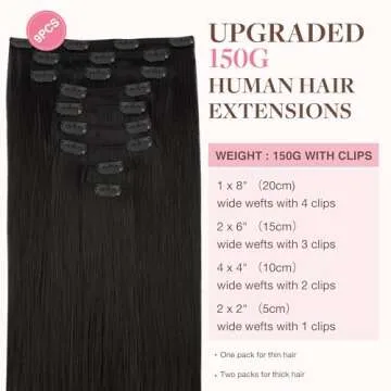 GOO GOO Clip in Hair Extensions Real Human Hair, Remy Human Hair Extensions Clip ins for Women, Natural Human Hair, 22inch 150g 9Pcs, 1B Natural black