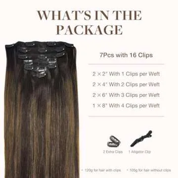 GOO GOO Clip in Hair Extensions Real Human Hair, Remy Human Hair Extensions Clip ins for Women, Natural Human Hair, 18inch 120g 7Pcs, 2/6/2 Balayage Dark Brown to Chestnut Brown