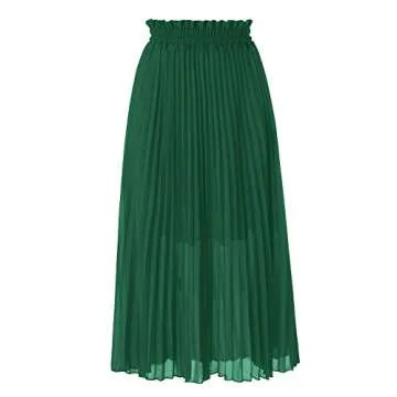 Show moreIntroducing the **GOOBGS Women's Pleated A-Line High Waist Swing Flare Midi Skirt** in a stunning deep green hue - a perfect blend of elegance and comfort! Crafted from **100% chiffon**, this skirt is lightweight yet durable, providing a beautiful drape that compliments every silhouette. The **high-waist design** with an elastic waistband ensures a flattering fit, accommodating body shapes from size **0 to 24+.** With a length of 31.1 inches for Small/Medium and 31.8 inches for XXL/XXX-L, it sits gracefully on the mid-calf, perfect for showcasing your favorite footwear. Wear it effortlessly from daytime outings to evening gatherings, making it a versatile staple in your wardrobe.