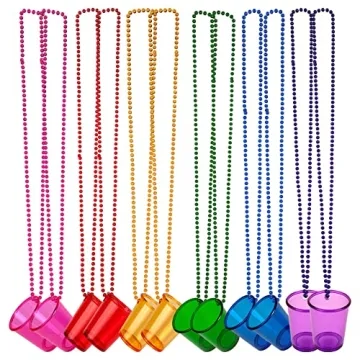 GOOCHOO Shot Glass on Beaded Necklace, 12 Pack for Festival Parade Decoration Bachelorette Party Supplies (MIX)