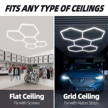 GooComfy Hexagon LED Garage Light Fixture, 120W 13200LM 25 Pack Honeycomb Ceiling Light for Garage, Basement, Gaming Room, Warehouse