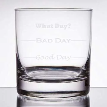 Why You Will Love This Product:The Good Day, Bad Day Rocks Glass elevates your drinking experience from mundane to memorable. Whether you're unwinding after a long day or celebrating with friends, this glass adds a touch of humor that resonates with everyone. Imagine the joy it brings during gatherings as laughter fills the room. This glass isn't just about enjoying a drink; it’s about sharing moments, creating memories, and winning hearts, all while spreading smiles with its quirky message. It’s the perfect accessory for your bar that makes every sip enjoyable.