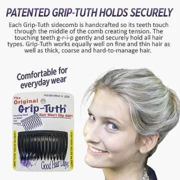 Show more The Grip-Tuth Side Combs are a game changer in the world of hair accessories! Designed with innovative, touching teeth that lock hair in place, these combs offer a unique solution for preventing your hair from slipping or sliding out throughout the day. With their patented Grip-Tuth technology, they are perfect for crafting a variety of hairstyles, whether you prefer a classy updo, a simple bun, or even a casual, messy look. Imagine creating perfect styles without the constant need for readjustment!