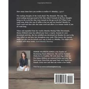 Show moreStart every week with inspiration and faith through the beautifully crafted Good Monday Morning: 52 Devotions For Your Year. This engaging devotional guide presents a unique weekly focus rooted deeply in scripture, making it perfect for those seeking to deepen their relationship with God. With carefully selected Bible verses, insightful commentary, and suggestions for reflective journaling, it transforms your quiet time into a purposeful encounter with the divine. Perfect as a cherished gift or personal treasure, this guide is designed for individuals at any stage of their spiritual journey.