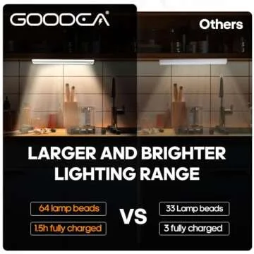When placed alongside other under cabinet lights, the Goodea 64-LED lights truly shine with their customizable modes and long-lasting battery life. Unlike many competitors, these lights offer a built-in battery indicator, ensuring users are well aware of battery status. The ease of installation without drilling or tools further sets Goodea apart as a user-friendly option for home lighting solutions, making them the top choice among consumers.