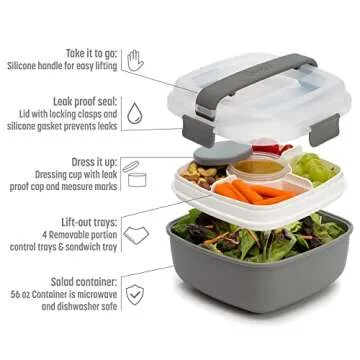 Introducing the Goodful Stackable Lunch Box Container, an innovative and thoughtfully designed solution for your daily meal prep! Perfectly sized at 56 ounces, this bento-style food storage container transforms how you enjoy salads, sandwiches, toppings, and more. With its 100% leak-proof design, you can confidently carry your favorite ingredients without worrying about spills. Made without BPA, it combines safety and functionality, ensuring every meal is...