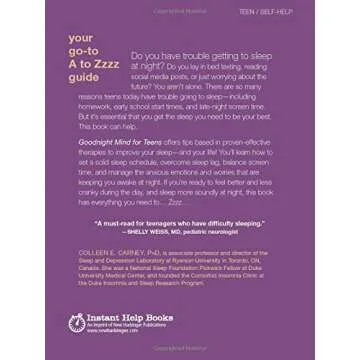 Show more Introducing the revolutionary book, Goodnight Mind for Teens, a part of the acclaimed Instant Help Solutions Series. This essential guide empowers teens to conquer their restless minds and achieve peaceful sleep. Addressing the common struggle of racing thoughts that disrupt sleep, this book offers practical techniques and skills that are straightforward and relatable. By combining expert insights with engaging content, it provides teens with the tools they need to quiet their minds before bedtime, ensuring they wake up refreshed and ready to tackle the day.