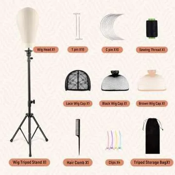 Included in this comprehensive set is a 23-inch foam mannequin head, specially designed to fit perfectly on the wig stand. This head is not only functional but also crafted from high-quality materials, ensuring durability and stability when showcasing your stunning creations. No more worries about your wigs toppling over!