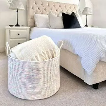 Goodpick Big Rainbow Basket 21.7 x 13.8 inches, Large Rope Basket for Nursery Living Room Bedroom, Toy Storage Basket for Clothes Towel Toy, Kids Storage Bin, 83L