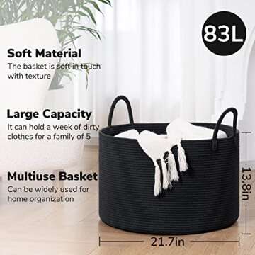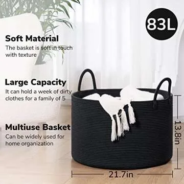Show more Discover the perfect blend of style and functionality with this stylish black storage basket, designed to elevate the organization of your home. Crafted for modern aesthetics, this versatile laundry hamper measures an impressive 21.7 x 13.8 inches, making it an ideal solution for decluttering any space. Its exclusive design fits seamlessly into various settings, from your laundry room to the living room, bedroom, or entryway.