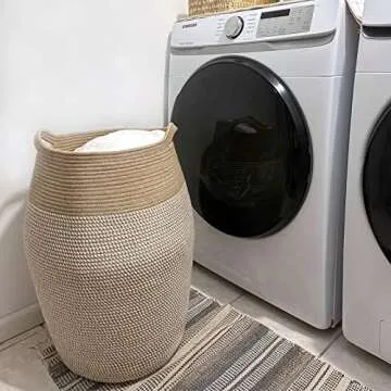 Show moreExperience the perfect blend of **style and functionality** with the Goodpick Laundry Hamper, a beautifully designed woven cotton rope basket that effortlessly elevates your home decor. Measuring **25.6" x 17.7"** tall, this large capacity laundry hamper is ideal for storing a week’s worth of dirty clothes, toys, or any items that need organization. Crafted with exquisite attention to detail, it offers a soft yet durable construction, ensuring it won't scratch your skin while providing sturdy support that rivals plastic hampers. This elegant piece not only tackles laundry chores but also serves as a charming accent in any room.