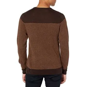 Goodthreads Men's Merino Wool/Acrylic Crewneck Herrinbone Sweater, Brown/Camel, X-Small
