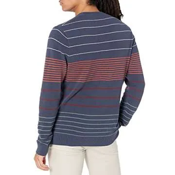 Show moreIntroducing the **Goodthreads Men's Soft Cotton Crewneck Jumper**, a luxurious and stylish addition to any wardrobe. This jumper isn't just a piece of clothing; it's crafted for comfort and designed to elevate your casual look. Made from **100% premium cotton**, it promises a super-soft feel against your skin while being breathable enough for all-day wear. The unique **'knit dorito' pattern** at the front neck adds an eye-catching twist, ensuring you stand out in any setting. Available in a sophisticated **navy with eye-catching orange and white stripes**, this jumper is the perfect blend of modern design and classic comfort.