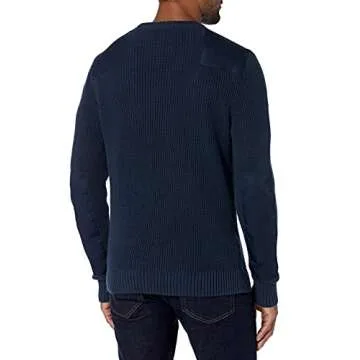Introducing the Goodthreads Men's Soft Cotton Military Jumper, the quintessential piece for any man seeking both style and comfort. Crafted with a thoughtfully designed fit that is easy through the chest and tapered at the waist, this jumper enhances your physique while providing exceptional comfort. Made from a super-soft natural fiber midweight yarn, it ensures warmth without the bulk, making it perfect for layering or wearing alone. The shoulder and elbow patch design adds a touch of rugged...