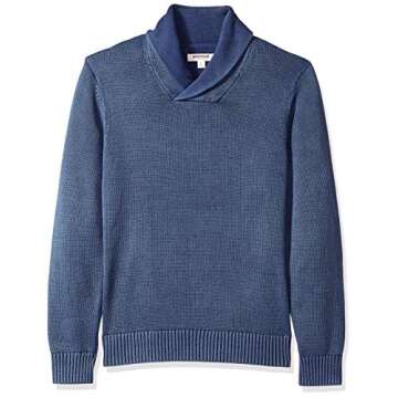 Goodthreads Men's Soft Cotton Shawl Sweater, Washed Blue, Large