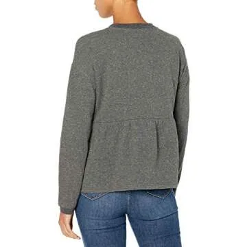Goodthreads Women's Heritage Fleece Long Sleeve Crewneck Cropped Peplum Sweatshirt, Charcoal/White, X-Small
