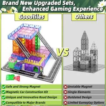 Goodtiles Magnetic Tiles Road Sets with Car Kits -Magnet Building Blocks Montessori Toys for Toddlers | Preschool Educational Sensory Construction Toys for Ages 3 4 5 6 7 Boys and Girls