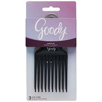 Goody Comb & Lift Hair Pick, Assorted Colors, 3 Count (Pack of 1)