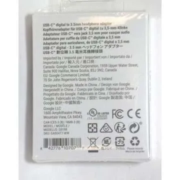 Google USB Type C to 3.5mm Headphone Adapter Pixel, XL, Pixel 2, XL, Pixel 3, Pixel 3XL, Other USB Type-C Phones - White