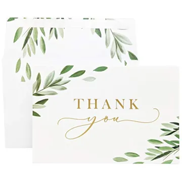 Gooji 4x6 Greenery Leaves Gold Foil Thank You Cards - Elegant Cards with Envelopes