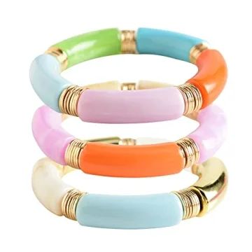 Show more Introducing the GOOJIDS Bamboo Tube Bangles Bracelet Set - a stunning creation that beautifully marries style and comfort. Handcrafted with care, each bracelet showcases a vibrant design featuring colorful acrylic beads intertwined with elegant gold segments. This set is perfect for those who appreciate the finer details in fashion and want to add a pop of color to their wardrobe. With an inner size of approximately 7.0" and a stretchable elastic cord, these bracelets effortlessly fit wrist sizes ranging from 6.5 inches to 8 inches, making them suitable for a variety of wearers. Whether you are dressing up for a special occasion or adding flair to your everyday attire, this set has you covered!