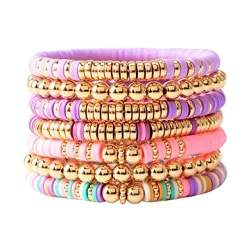 GOOJIDS Surfer Heishi Clay Bead Bracelets - 7pcs Bohemian Set