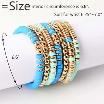 GOOJIDS Surfer Heishi Clay Bead Bracelets for Women Bohemian Stackable Gold Beaded Stretch Bracelets Elastic Layering Friendship Bracelets Set Boho Jewelry (G-Blue&Light Blue 7pcs)