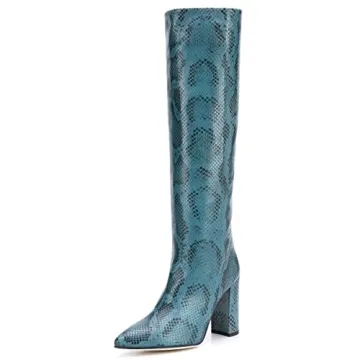 These boots feature a trendy snakeskin print and a chunky high heel that makes them a statement piece in your wardrobe. The classic design ensures they never go out of style, allowing you to effortlessly transition from casual outings to formal events without missing a beat. The knee-high silhouette accentuates your legs, adding a touch of allure to your outfit.