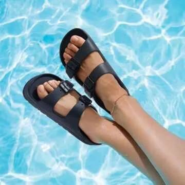 Goosecret Women's Platform Sandals with Arch Support Chunky Lightweight Foam Slip on Slides Comfortable Summer Beach Sandals with Adjustable Buckle Black, 41(size 10)