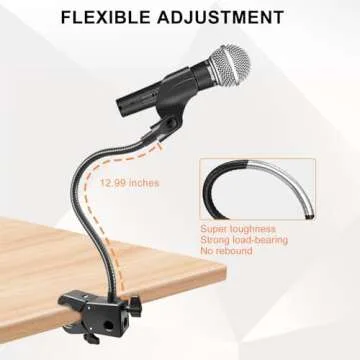Gooseneck Microphone Stand - Flexible Mic Arm with Clamp & Clip for Musicians